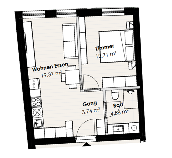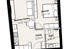 Moderne und hochwertig ausgeführte 2-Zimmer-Neubauwohnung mit praktischer Abstellkammer, einem großzügigen Schlafzimmer, einem hellen und offen gestalteten Wohnbereich mit vorgesehenem Küchenanschluss, einem eleganten Badezimmer mit Dusche sowie einem dazu gehörigen Kellerabteil.