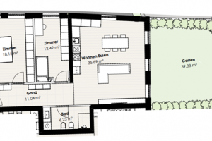 Hochwertige Materialien sorgen für ein angenehmes Wohngefühl: Ein geölter Eichen-Vollholzboden schafft eine warme Atmosphäre, während die Fußbodenheizung über eine moderne Wärme-/Kältepumpe betrieben wird. Auf dem Dach befindet sich eine gemeinschaftliche Photovoltaikanlage, die unter anderem den Aufzug und die Allgemeinbereiche mit Strom versorgt. Die Wohnung ist bequem per Aufzug erreichbar. Dreifach verglaste Fenster und die Bauausführung nach Klimahaus-A-Nature-Standard gewährleisten höchste Energieeffizienz und Wohnkomfort.